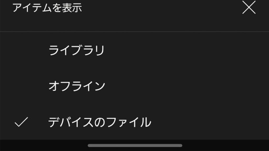 - YouTubeMusicを開き、ライブラリ→デバイスのファイルを選択